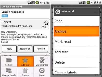 A Gmail on Android: official pictures